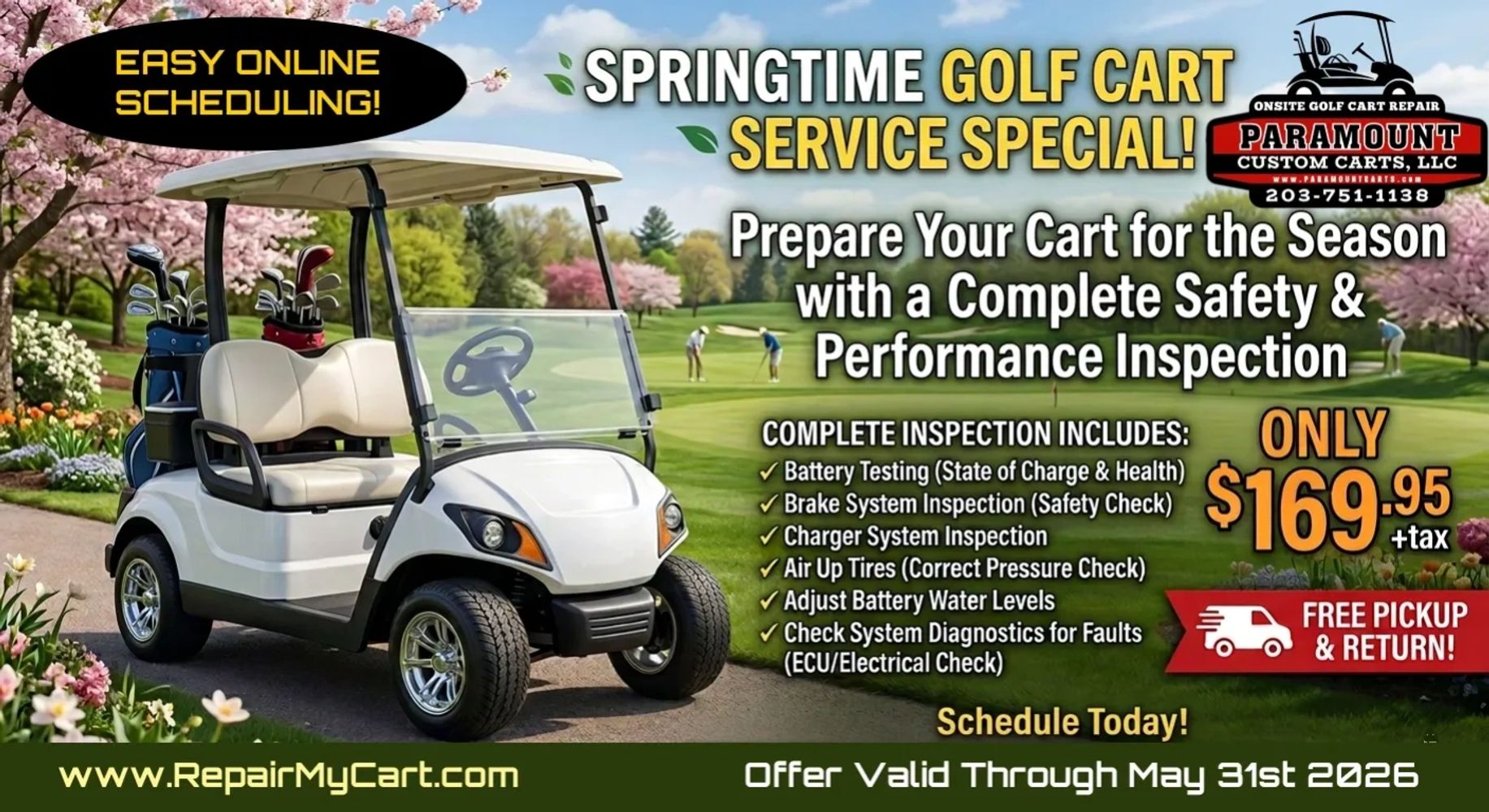 Expert golf cart repairs and upgrades. Quality parts, fast service — FREE PICKUP AND RETURN within our service area!