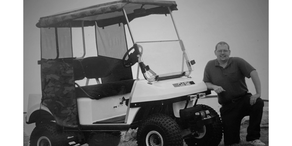 Back around 1993 while working for CLUB CAR, I had a customer who was working at a construction site. He needed a cart that could maneuver around the jobsite to move small tools and staff. The problem was that all the golf carts he tried to use, had low ground clearance and would get stuck easily on the rough terrain. I ended up designing a "lift kit" that would allow the use of larger tires and thus gaining more ground clearance. This was not the norm as it is today. There were no such things as lifted carts back then. No kits or anything!... So out came my welder and the drawing pad!! A 5" lift was designed, and some 22" ATV tires mounted on factory steel wheels (no aftermarket wheels back then either!). I was definitely the only person in my area to even try this and the customer was overly pleased with the outcome! I have been modifying carts since then making more improvements on each one that followed.