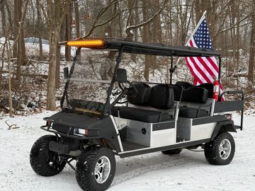 NEW BATTERIES (May 2025), NEW WHITE BODY, NEW REAR WHEELS AND TIRES, NEW CHROME WHEEL-COVERS, NEW TRIM PIECES, NEW TINTED WINDSHIELD, NEW FLIP STYLE REAR SEAT WITH PASSENGER CUP HOLDERS, NEW HEAVY DUTY DUAL ACTION LEAF SPRINGS, NEW BRAKE SHOES, NEW DELUXE LIGHTING KIT(high/low beam, turn signals, Hazzard, horn), NEW SIDE AND REAR VIEW MIRRORS, NEW USB PORT W/VOLTMETER, NEW BLACK SEAT COVERS-MARINE GRADE.